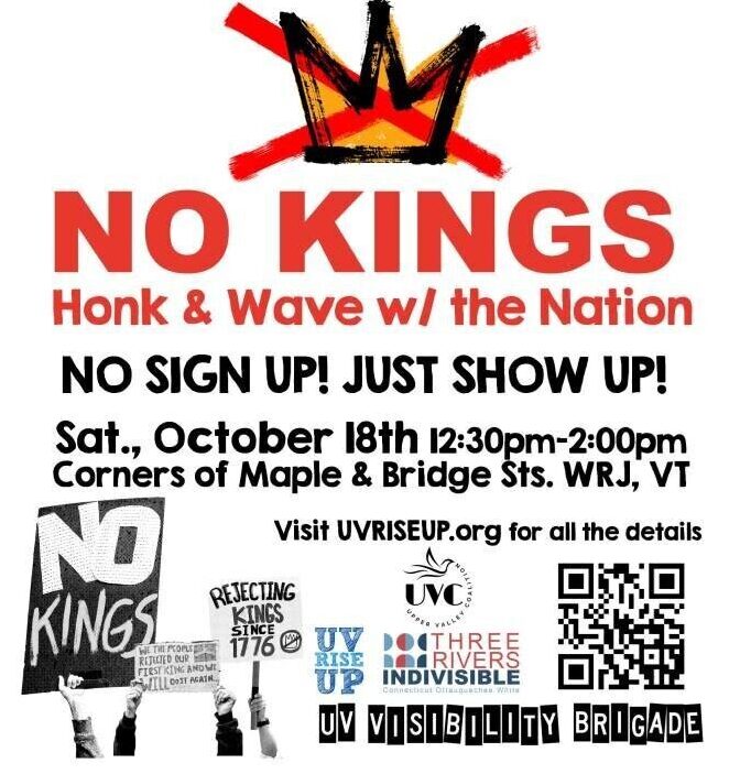 Looking for an opportunity to give back to your community? Spend a few hours helping your neighbors stay warm this winter by assembling insulating window inserts. Sign Up Here! October 2nd-8th, Many Timeslots! Sharon Congregational Church, 55 Rt 132, Sharon VT Feel free to join us every Thursday in Lebanon to protest for pro-democracy. We meet 5:00 — 5:45 pm at Colburn Park in Lebanon, NH. All are welcome for any or all of that time. We have extra signs if you don’t have one. Questions? Email Julia Neily at jneily603@aol.com or Erin Walthour at erin.walthour@gmail.com. |